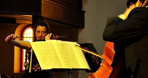 This is the Italian Broz Quartet, violin, viola, piano and cello though they usually play as a trio without the piano. Talented youngsters they got standing ovations at all performances! It was difficult to photo a quartet from the side so I just had to do the best I could with the violin player – she used her eyes to co-ordinate with the others. See more at http://www.triobroz.com
