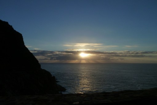 Sunset on Chapman’s Peak Road. This road on the west coast of the peninsular was closed for a number of years due to dangerous rock falls. It has since re-opened with steel catch fences but I don’t think they would stop anything sizeable.