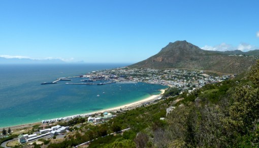 Simon’s Town looking south – it is located on the west coast of False Bay. That’s the South African Navy (frigates) in the harbour.