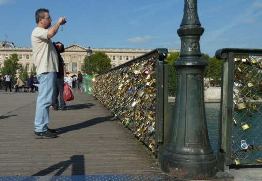 Pont des Arts. Where lovers demonstrate their commitment by locking a padlock to the fence and throwing the keys into the Seine.