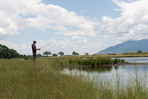Gary fishing on the small section of the Zambezi that flows past the lodge. Who cares if you don’t catch when you can look at a view like this?