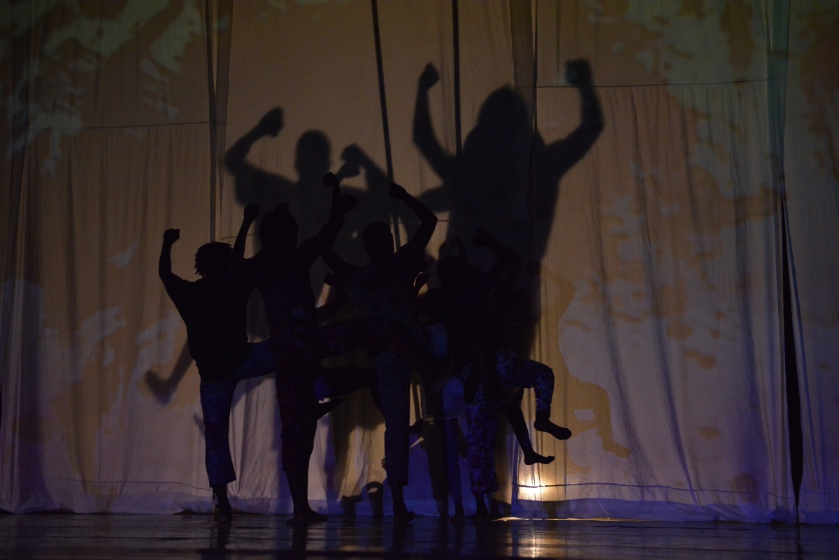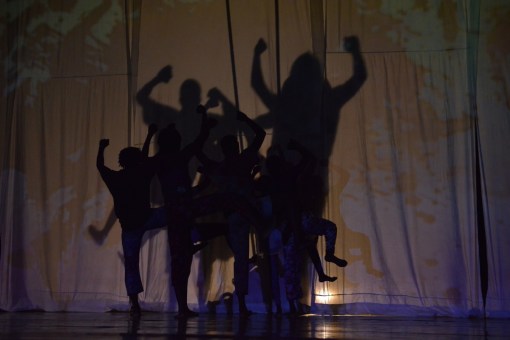 Shadows emerging. Clever use of shadows both front and back projected onto a curtain on stage.