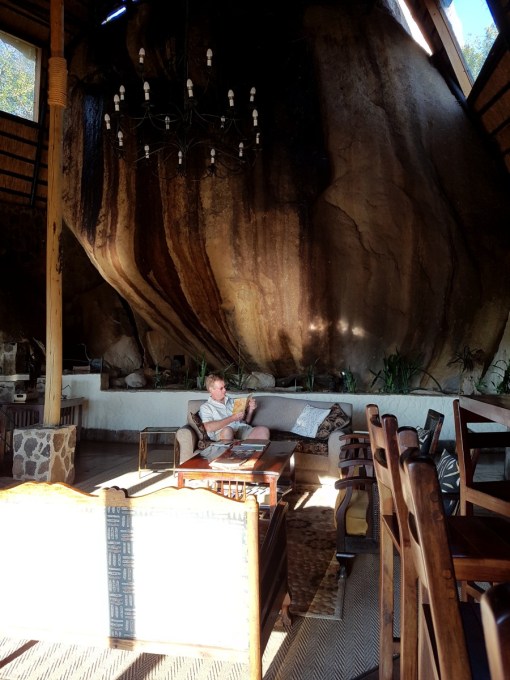 Big Cave Camp lounge is built into the stone.
