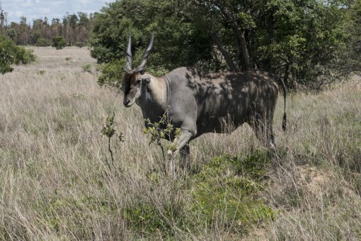 An eland bull comes for a quick snack. Most of the game we came across was habituated to humans.