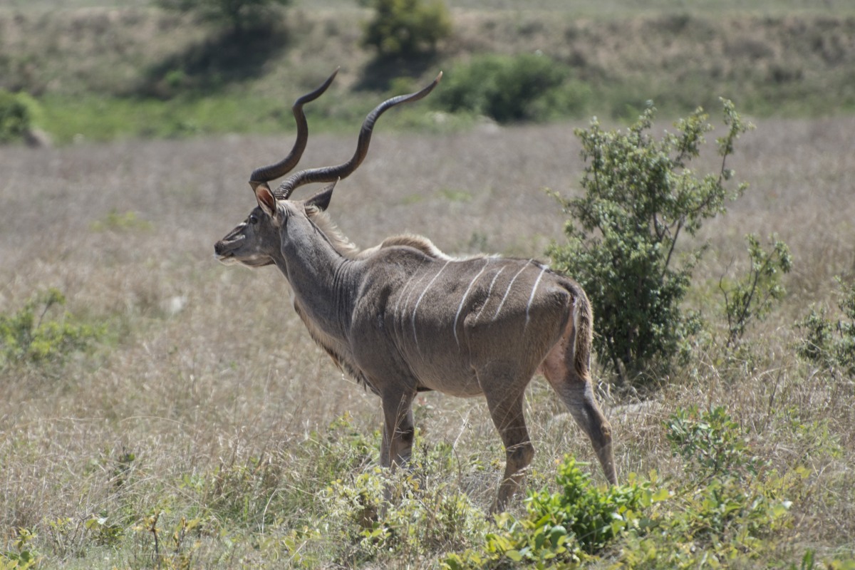 A magnificent kudu bull wanders off. They are notoriously shy of the camera!