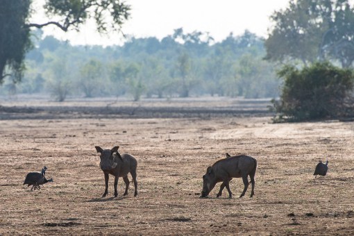 Warthogs and guinea fowl early in the morning. It was surprisingly cold for one of the hottest places in the country come summer.