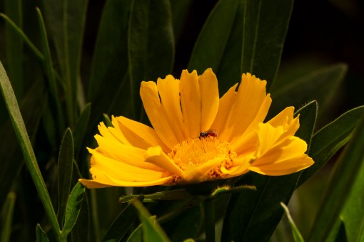 Perhaps not surprisingly the insect life in the garden is not prolific and yes, I am frequently looking for photo opportunities. This daisy is something of a magnet for hover flies. Superficially resembling a bee it’s known as a bee mimic of which there are several. I do make an effort not to use “heavy” agro-chemicals on the garden to the point that the roses have suffered so I put it down to the newness of the garden.