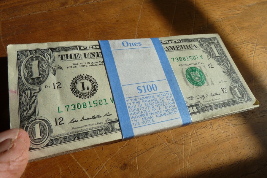28 06 2014I felt absurdly pleased with myself. A whole $100 in NEW dollar bills! Now THAT was something to feel good about. But it had taken a bit of doing.