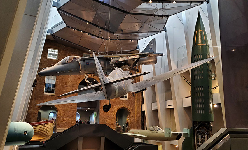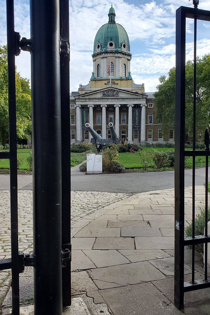 Atrium of the IWM. Spitfire foreground, Hawker Harrier backgroundBombs, guns and stuffEntrance to the Imperial War Museum. The main guns of a battleship adorn the gardensKnow your enemy is a central dictum of warfare. Videos loop in the backgroundI think this is the shell of General Patton’s car15 inch naval gun as commonly fitted to British Royal Navy battleshipsThis speaks for itselfSnapshots from the Imperial War Museum