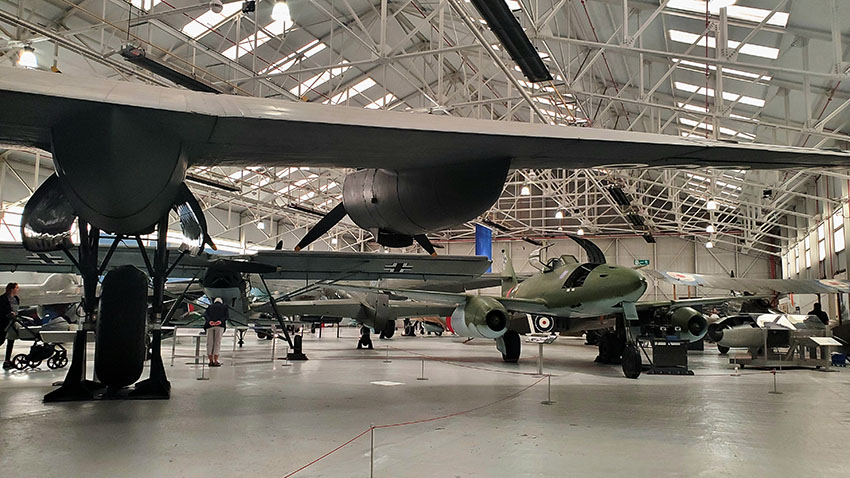 Pithy and to the point.Experimental and fast. Reminds me of the Lockheed SR-71 BlackbirdThe venerable Hurricane. The workhorse of war, responsible for the majority of German aircraft shot down despite the more glamorous SpitfireGerman Me 262. Fortunately they didn’t make many of them.The plywood wonder – a MosquitoThe Sopwith Pup – another legendLeopard tankThe ill-fated BAC TSR-2The Vixen, successor to the VulcanThe legendary Vulcan on the left, a Lightening hanging in the middleRAF Cosford