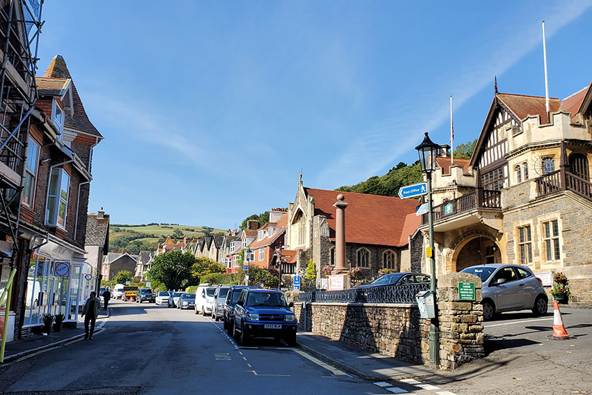 Rain on the windscreen. Fortunately this was the only day we thought of doing other thingsThere are a lot more dogs about in the UK since we last visited in 2018. Is this the result of covid when people were looking for home companions?A headland on the Bristol channel near Porlock. Sunny and cool.Overlooking Porlock from the edge of Exmoor National ParkLynton townLynton and Lynmouth cliff railwayPorlock yacht mole