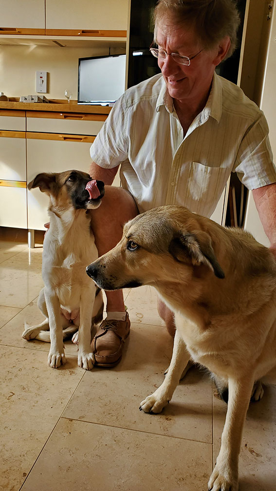 Duncan and the rescue dogs. Winnie on the left, Sheba on the right