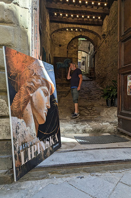 Art gallery CortonaMandy, Eugene, Marianne in CortonaSalvador Dali sculptureMandy in the main square Cortona