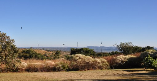 The enlargement at 1 (you will need to click on the main picture to see it clearly) shows the Great Dyke, a geological feature that runs down the centre of Zimbabwe and is the source of major mineral wealth. It is also where we paraglide, or used to in the days when there were more than 5 pilots left in a country larger than the UK! The actual launch site is not quite visible in this photo. What IS remarkable is that this feature is 60km away and reasonably clearly visible. On a clear day it is much more visible than this.I took this photo on the 5th May and as you can see there is a certain amount of smoke around already as we head into our dry winter season. A large proportion of the country WILL burn and the view will disappear (click on this AFIS link for the latest satellite imagery of fires in Southern Africa – it is quite sobering). Of course not only does the view disappear but a substantial amount of the biomass does too and soil fertility plummets. While the world faces iminent food supply issues and much is being discussed on how to solve it, a lot could be done by just implementing good farming practices in this part of the world.