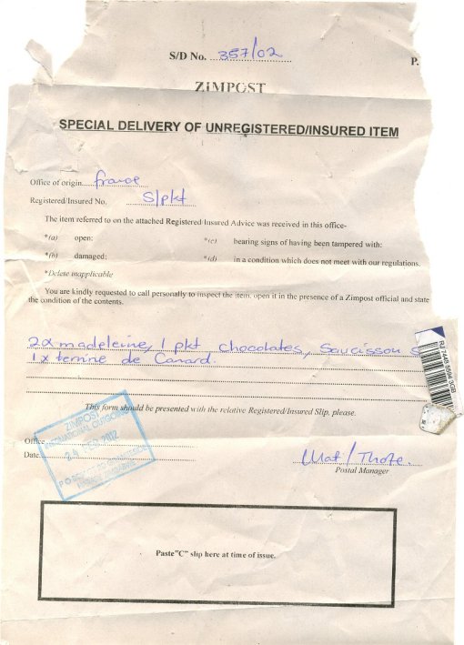 The box had been found open, the contents inspected and then the box resealed – I didn’t begrudge the dollar!  In a government company extraordinarily badly paid they could have easily pocketed the contents and thrown the box in the rubbish bin. It was nice to know that this level of honesty still exists.