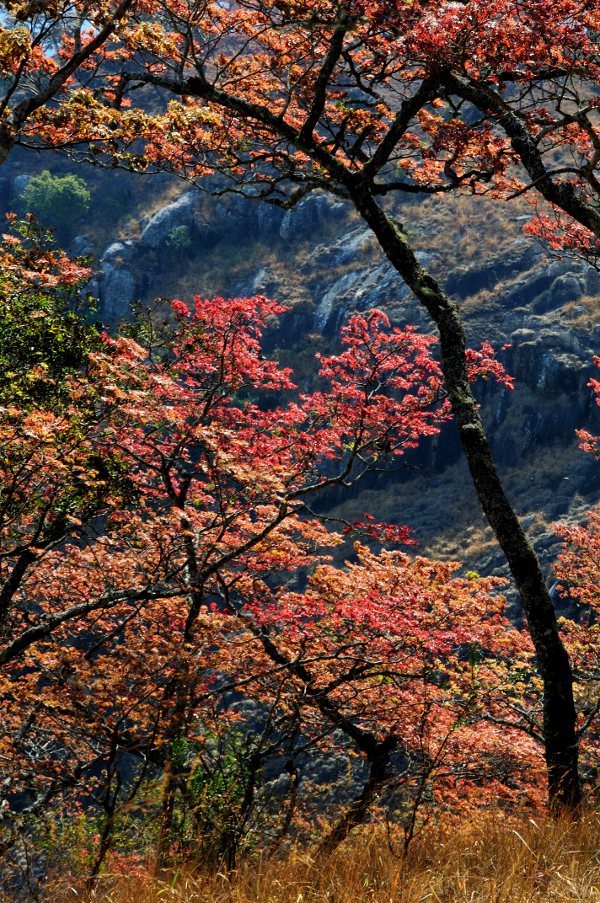 Colours. The blazing colours of the new growth on the musasa (Brachystegia speciformis) trees. If one is lucky and catches a day of relatively little smoke it is possible to photo the spectacle. I never have. One has to drive up to the Eastern Districts to get the best displays.